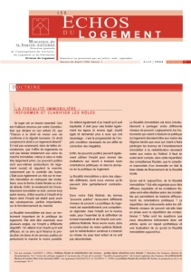 Av r i l 2004 N U M E R O 2 E CHOS L E S D U M i n i s t è r e d e l a R é g i o n w a l l o n n e Direction générale de l'Aménagement du Territoire, du Logement et du Patrimoine Division du Logement L O G E M E N T Bimestriel ne paraissant pas en juillet, août, septembre Bureau de dépôt 5000 Namur 1 D O C T R I N E L A F I S CA L I T É IMMOB I L I È R E : R É FORME R E T C L AR I F I E R L E S RÔL E S Se loger est un besoin essentiel. Ceci est d’ailleurs reconnu par notre Constitu- tion qui déclare en son article 23, que "Chacun a le droit de mener une vie conforme à la dignité humaine. Ce droit comprend le droit à un logement décent" . Il n’est pas surprenant, dans de telles cir- constances, que l’offre de logements ne soit pas laissée totalement aux soins du marché immobilier, même si celui-ci reste très largement privé. Les pouvoirs publics sont eux-mêmes producteurs (le loge- ment social) et régulent le marché, notamment par le contrôle des loyers. L’Etat joue également un rôle sur le mar- ché immobilier en octroyant des incita- tions, sous la forme d’aide fiscale ou d’ai- de directe. Enfin, le rendement de l’inves- tissement immobilier se doit, comme tout autre revenu, d’être soumis à l’impôt et la façon dont l’impôt est établi peut avoir des conséquences, parfois importantes, sur le fonctionnement du marché. La fiscalité immobilière est donc un ins- trument important de la politique du logement. Elle doit être examinée sous plusieurs angles, car l’impôt a différents objectifs 1 . On attend d’un impôt qu’il soit efficace, en ce sens qu’il finance la pro- duction de biens et de services publics en perturbant le marché le moins possible. On attend également d’un impôt qu’il soit équitable. Il doit pour cela traiter égale- ment les égaux (à revenu égal, impôt égal) et demander plus à ceux qui ont davantage : c’est la progressivité de l’im- pôt, condition nécessaire de son effet de correction des inégalités. Enfin, les pouvoirs publics peuvent égale- ment utiliser l’impôt pour donner des incitations qui visent à traduire leurs orientations politiques, ici dans le domai- ne de la politique du logement. La fiscalité immobilière a donc des objec- tifs différents, dont nous verrons qu’ils peuvent être partiellement contradic- toires. Dans notre Etat fédéral, les termes "pouvoirs publics" recouvrent différents niveaux de pouvoir. La politique du loge- ment est essentiellement une compéten- ce régionale, mais l’impôt sur le revenu reste, pour l’essentiel de la définition de la base imposable et de l’impôt, une com- pétence fédérale. Nous avons voulu, dans la construction de notre système fédéral, que la redistribution continue à s’exercer au niveau du pays tout entier et ne soit pas décentralisée. La fiscalité immobilière est donc inévita- blement à partager entre différents niveaux de pouvoir. Logiquement, les ins- truments qui visent à traduire la politique du logement devraient être aux mains des Régions tandis que ceux qui visent à faire participer les revenus de l’investissement immobilier à la redistribution devraient rester aux mains du Fédéral. Il faut en outre tenir compte, dans cette répartition des compétences fiscales, que le caractè- re inamovible d’un immeuble en fait la base idéale de financement de la fiscalité locale. Qu’en est-il, aujourd’hui, de la fiscalité immobilière ? Est-elle organisée pour être efficace, équitable, et les incitations fis- cales sont-elles établies selon des modali- tés qui permettent de traduire efficace- ment les orientations politiques ? La répartition des instruments entre les dif- férents niveaux de pouvoir est-elle bien en phase avec la répartition des compé- tences ? Telles sont les questions que nous discuterons brièvement dans cet article, après un rappel synthétique et une évaluation de ce qu’est la fiscalité immobilière aujourd’hui. 1 Voir par exemple VALENDUC C (2001), Politique fiscale et redistribution des revenus : quelles lignes directrices pour demain ? , Ministère des Finances, Bulletin de Documentation, No 2 (Actes du colloque organisé à l’occasion des 10 ans de la section " Fiscalité et parafiscalité " du Conseil supérieur des Finances, les prélèvements fiscaux et sociaux face à de nouveaux défis ). Voir également MALDAGUE R. et VALENDUC C. (1999), La politique fiscale des années 90 , Reflets et perspectives de la vie économique, No 4